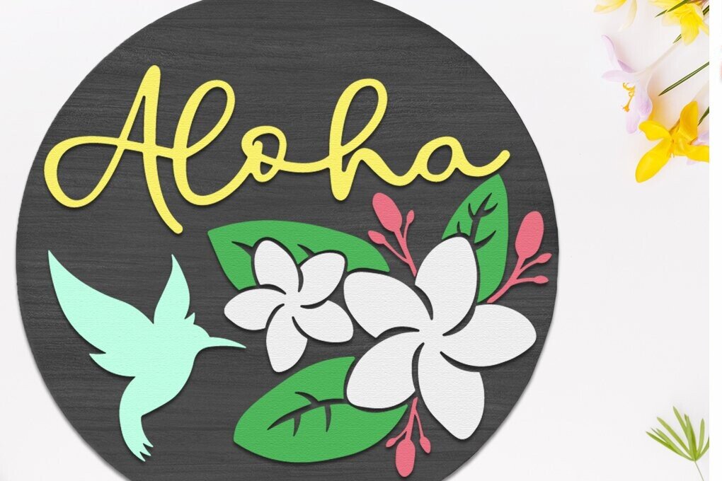 Intra απο ξύλο plywood 3mm-4mm πάχος Aloha Sign , Plumeria Door Sign Δίασταση 10x10 cm INTRAFABR-118651709