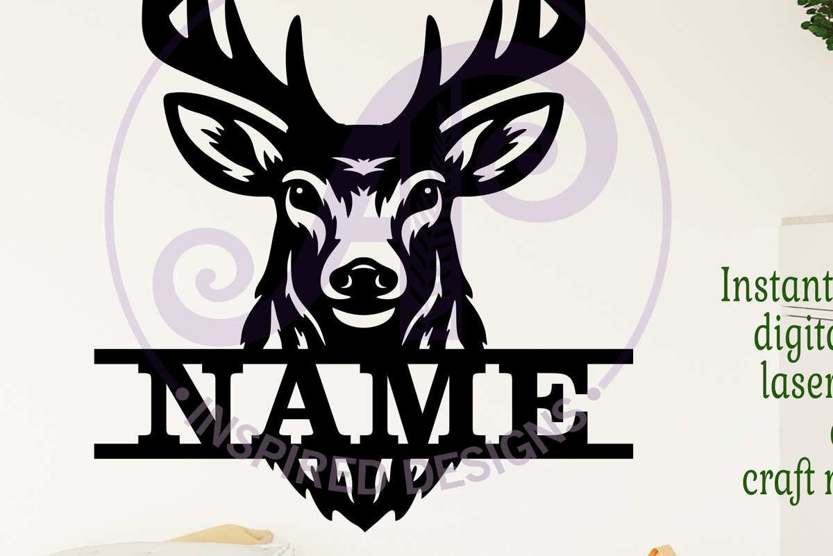 Intra απο ξύλο plywood 3mm-4mm πάχος Buck Deer Head Name Wall Art SV, Δίασταση 10x10 cm INTRAFABR-117829594