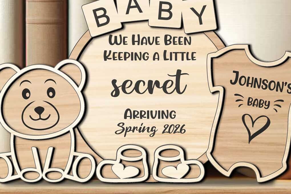 Intra απο ξύλο plywood 3mm-4mm πάχος Ανακοίνωση Baby Surprise Sign Bear Δίασταση 30x20 cm INTRAFABR-120773921