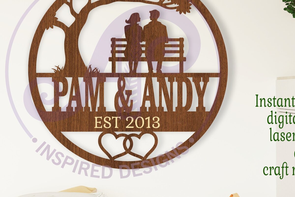 Intra απο ξύλο plywood 3mm-4mm πάχος Ζευγάρι επετείου σε πάγκο πάρκου με θέμα Δίασταση 6x6 cm INTRAFABR-109574049