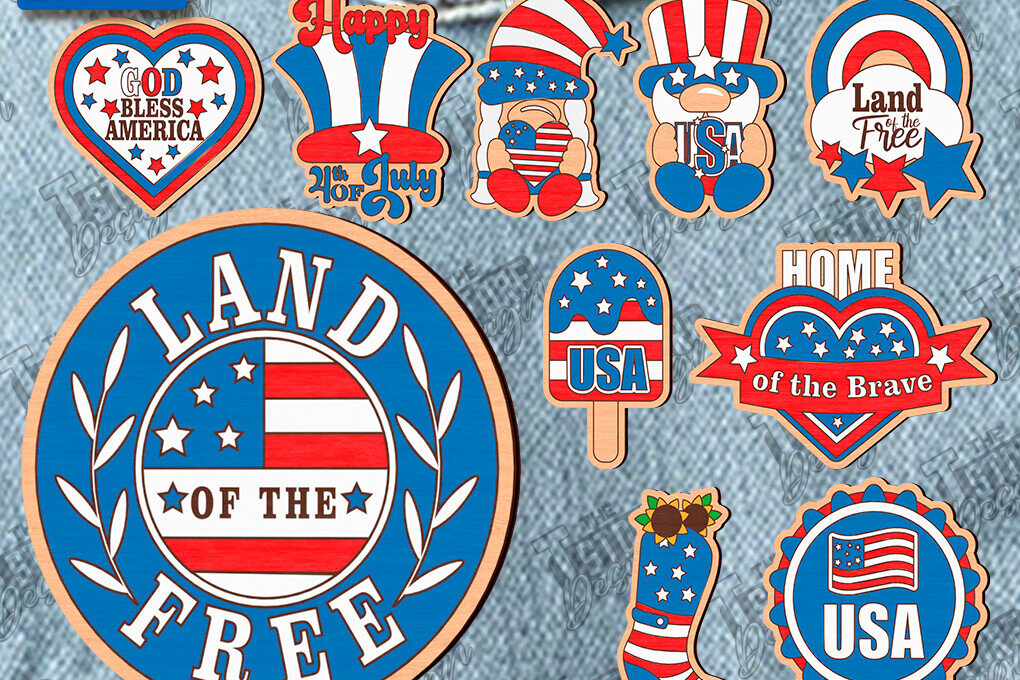 Intra απο ξύλο plywood 3mm-4mm πάχος κοπής με λέιζερ καρφίτσες 4ης Ιουλίου | CNC Δίασταση 30x20 cm INTRAFABR-121894443