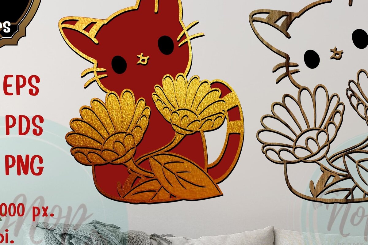 Intra απο ξύλο plywood 3mm-4mm πάχος τρισδιάστατη γάτα και λουλούδια Δίασταση 3000x3000 cm INTRAFABR-65292850