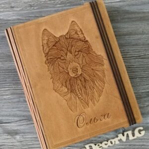Intra απο ξύλο plywood 3mm-4mm πάχος - Διακοσμητικό κάλυμμα σημειωματάριου με χαραγμένο Wolf Δίασταση 30x30 cm Intraeaxys-eoxlyygo
