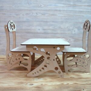 Intra απο ξύλο plywood 3mm-4mm πάχος - Καρέκλα και τραπέζι φανταχτερής κούκλας Δίασταση 30x30 cm Intraeaxys-91jdz941