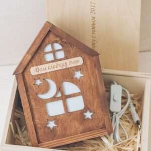 Intra απο ξύλο plywood 3mm-4mm πάχος - Διακοσμητικό φωτιστικό Moon Star Night Light Δίασταση 30x30 cm Intraeaxys-zo9yz9r7