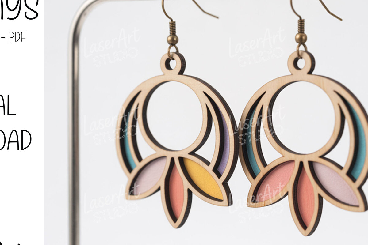 Intra απο ξύλο plywood 3mm-4mm πάχος Boho σκουλαρίκια με κρίκο με πέταλα Δίασταση 3x3 cm INTRAFABR-122935923