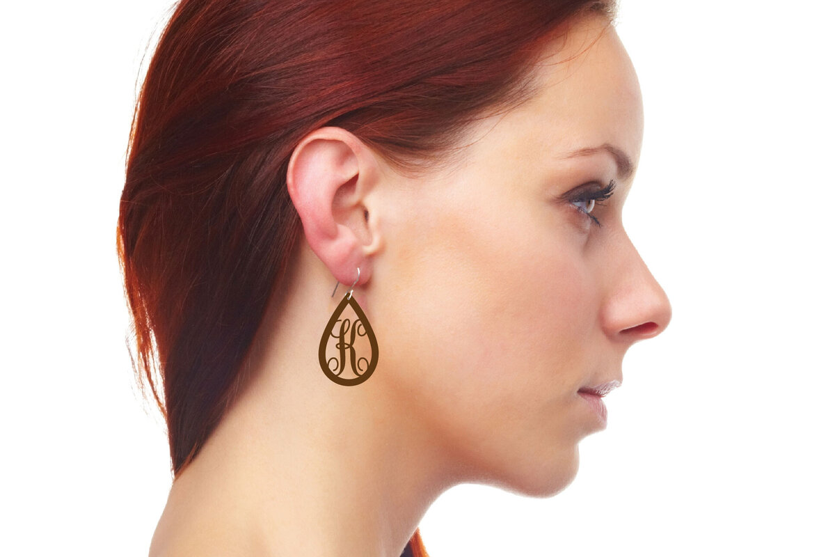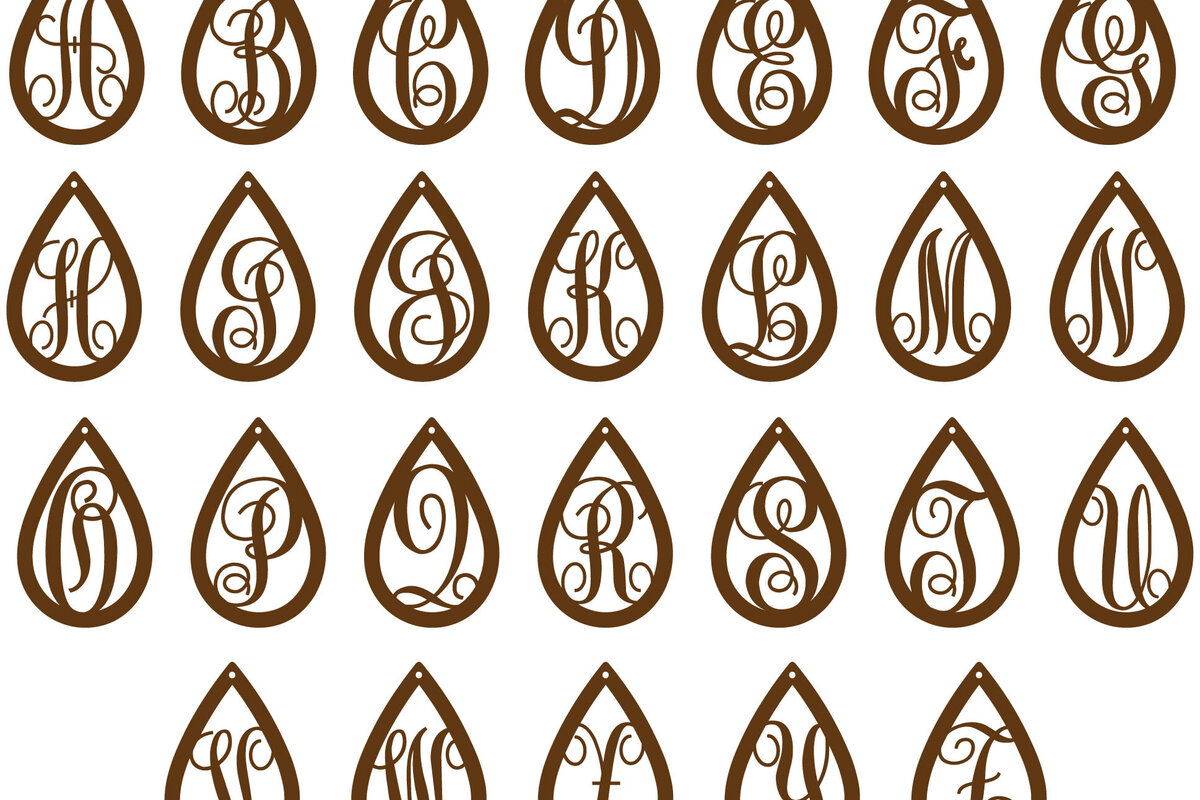 Intra απο ξύλο plywood 3mm-4mm πάχος κοπής με λέιζερ Alphabet Teardrop Earring Δίασταση 3x3 cm INTRAFABR-125026155
