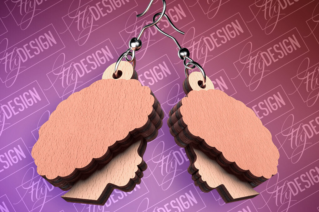 Intra απο ξύλο plywood 3mm-4mm πάχος Μαύρα γυναικεία σκουλαρίκια με λέιζερ | CNC Δίασταση 3x3 cm INTRAFABR-88385989