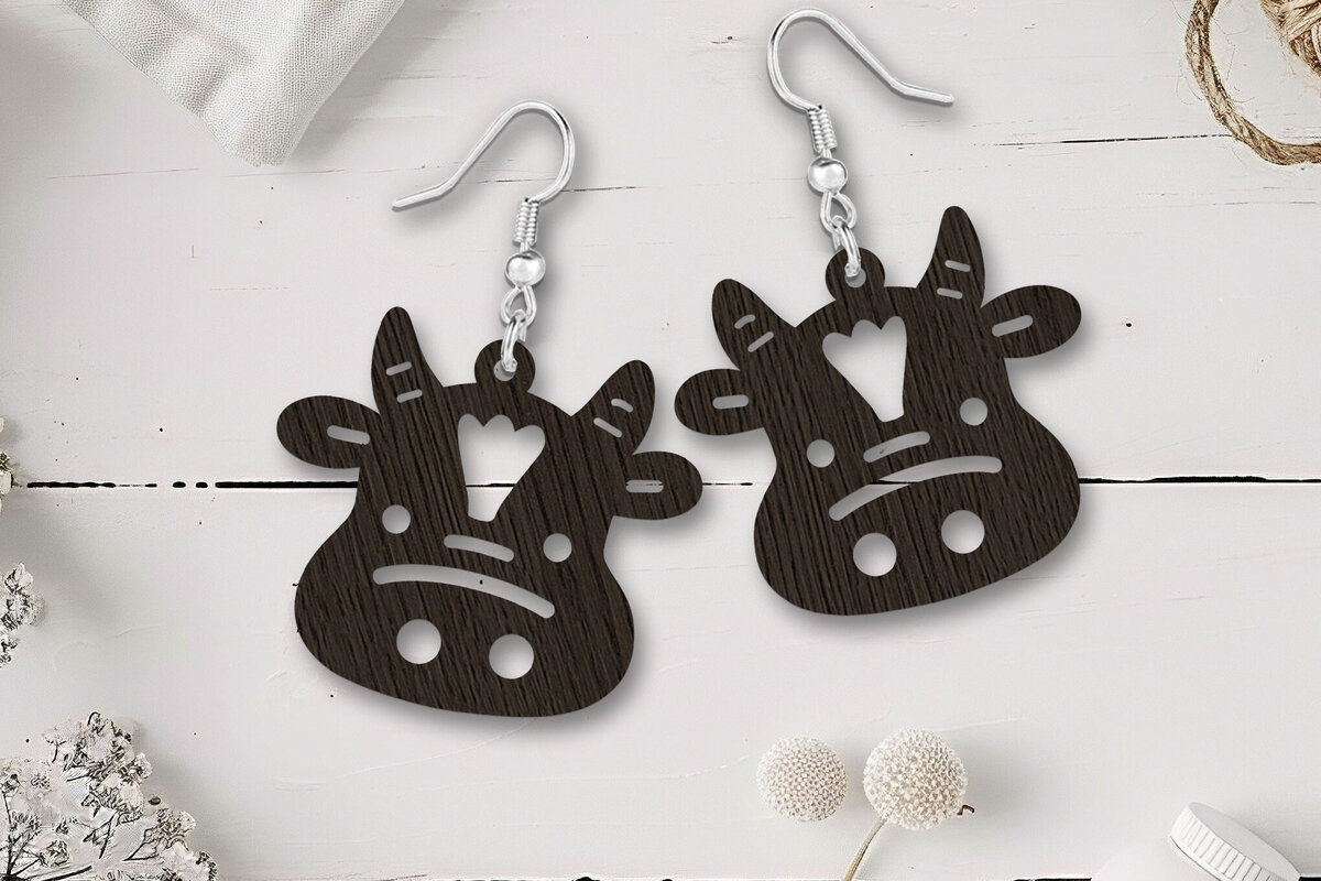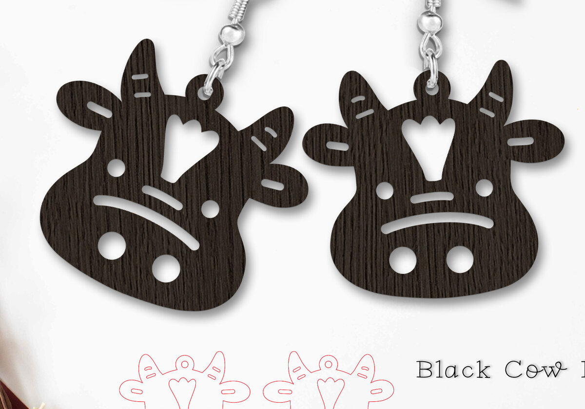 Intra απο ξύλο plywood 3mm-4mm πάχος Μαύρα σκουλαρίκια ζώων φάρμας αγελάδων Δίασταση 1x1 cm INTRAFABR-118835370