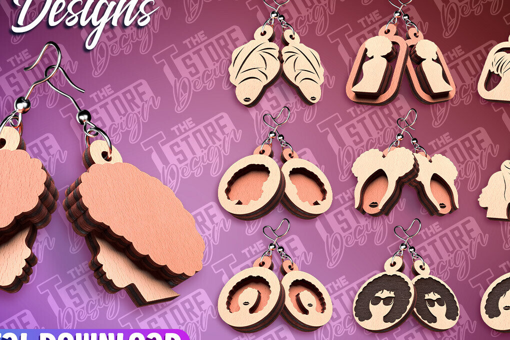 Intra απο ξύλο plywood 3mm-4mm πάχος Μαύρα γυναικεία σκουλαρίκια με λέιζερ | CNC Δίασταση 3x3 cm INTRAFABR-89112985