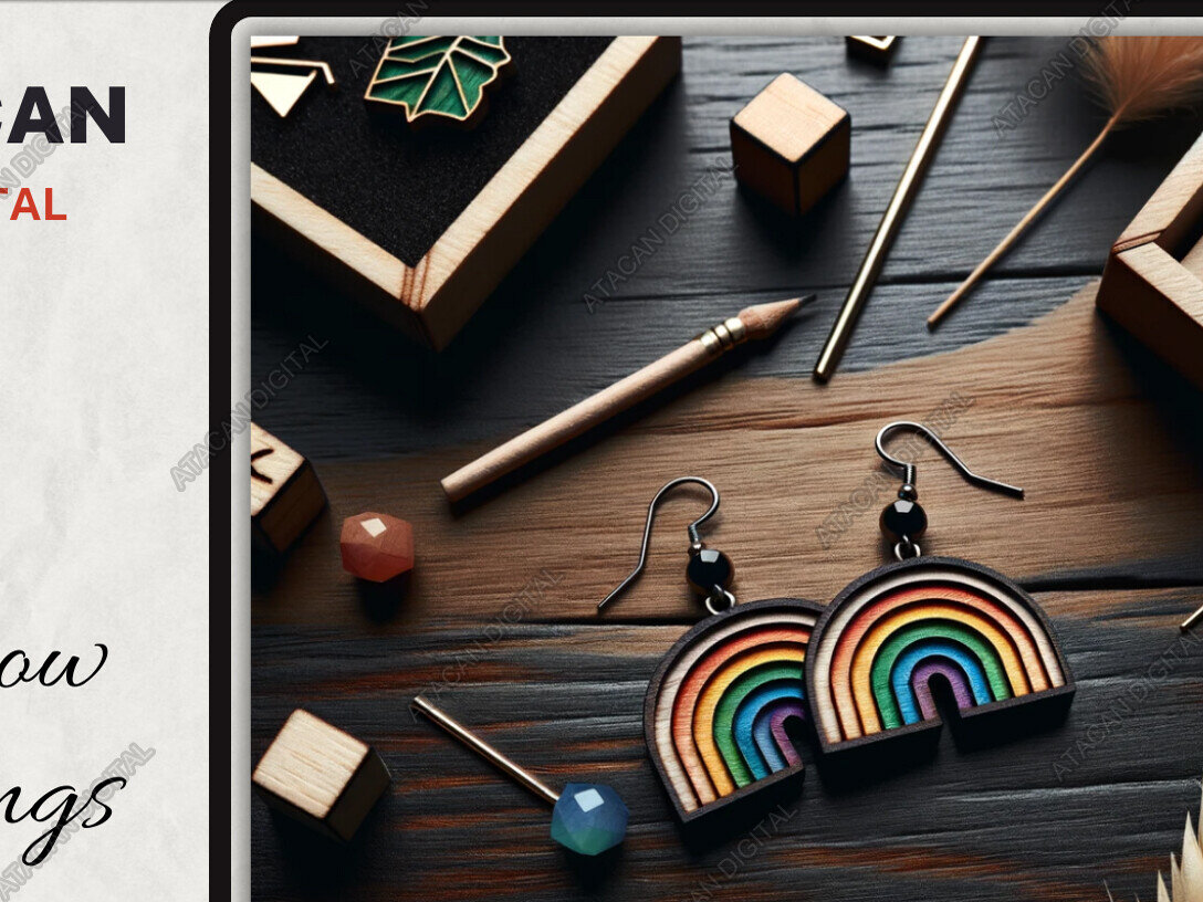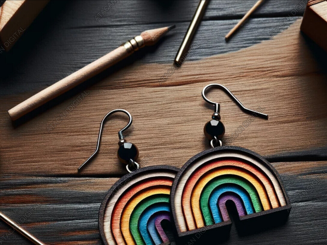 Intra απο ξύλο plywood 3mm-4mm πάχος Ξύλινα σκουλαρίκια Arch Rainbow - Πολύχρωμα Δίασταση 3x3 cm INTRAFABR-91109135