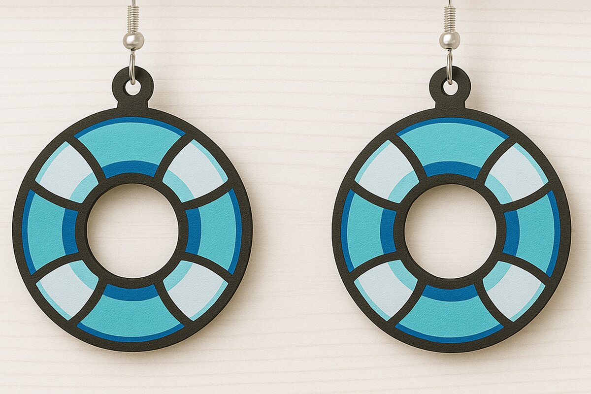 Intra απο ξύλο plywood 3mm-4mm πάχος Μπλε Σκουλαρίκια Lifesaver Δίασταση 3x3 cm INTRAFABR-123080606