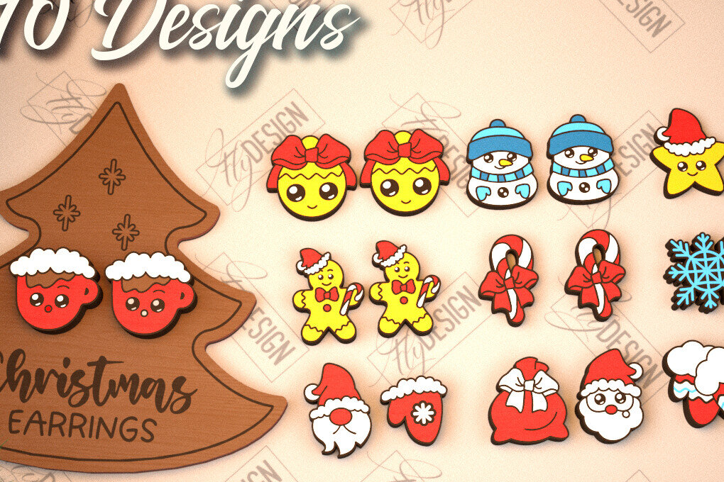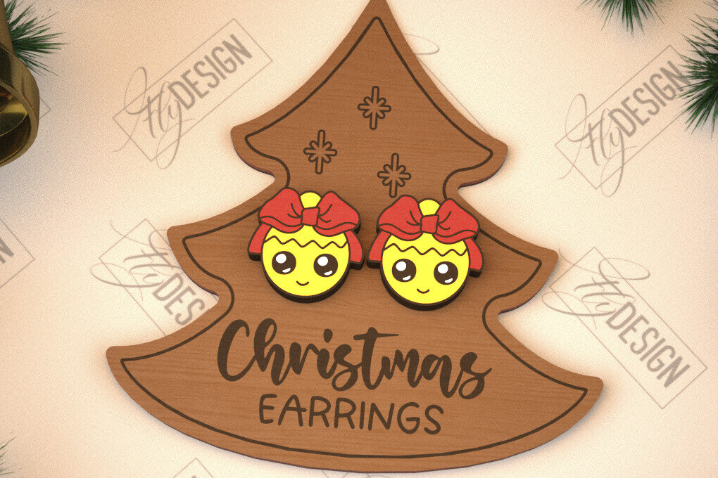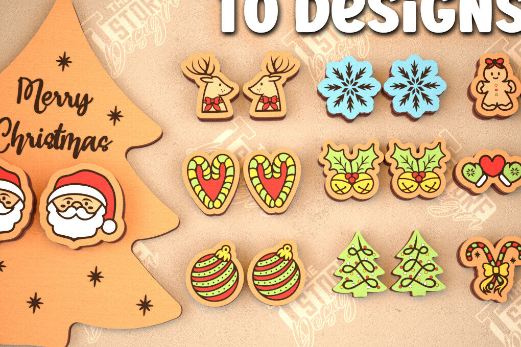 Intra απο ξύλο plywood 3mm-4mm πάχος με χριστουγεννιάτικα σκουλαρίκια | Κοσμήματα Δίασταση 3x3 cm INTRAFABR-105341584