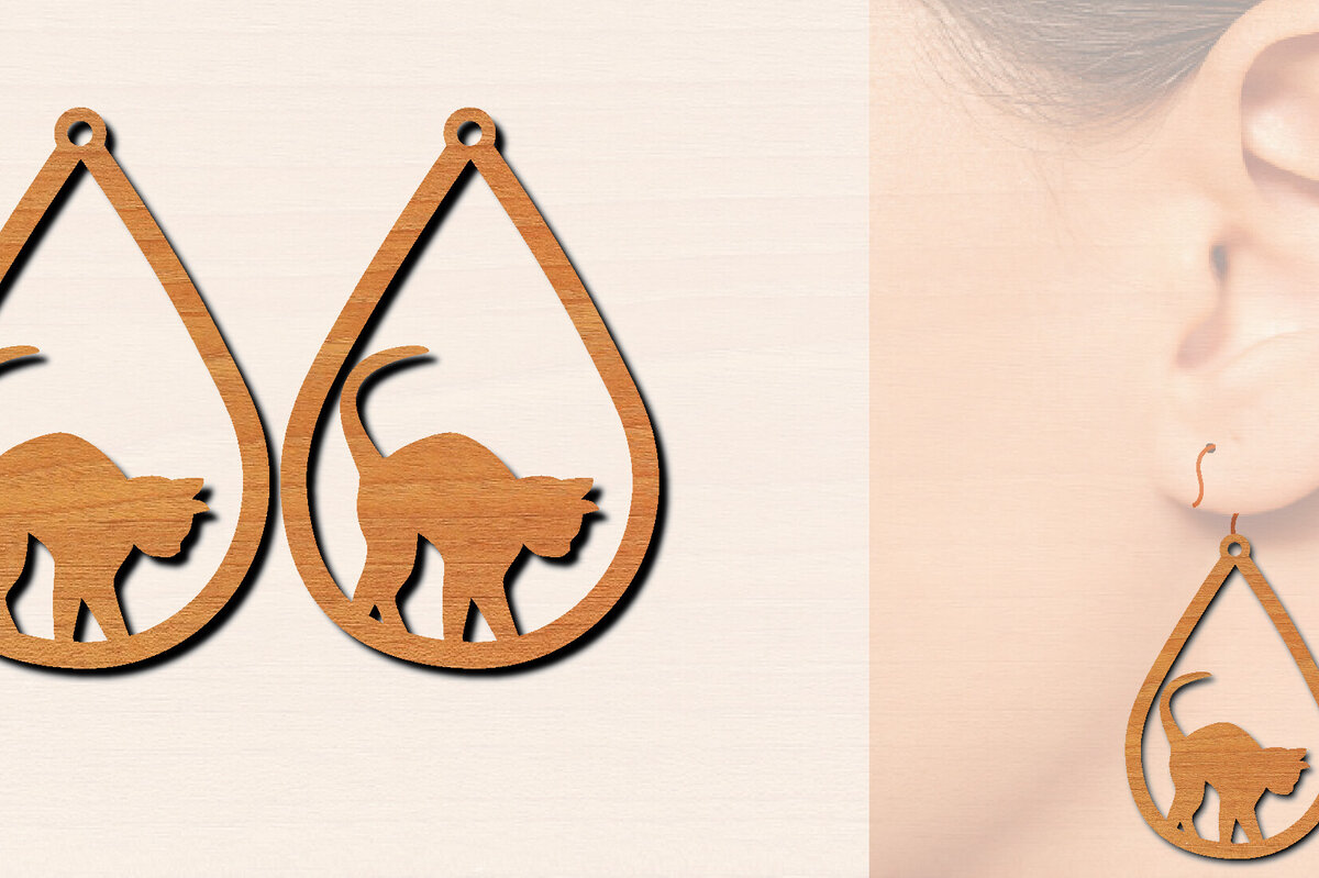 Intra απο ξύλο plywood 3mm-4mm πάχος Ξύλινα σκουλαρίκια γάτας με Δίασταση 3x3 cm INTRAFABR-100200326