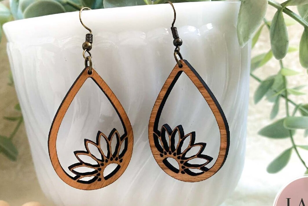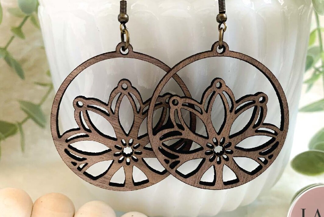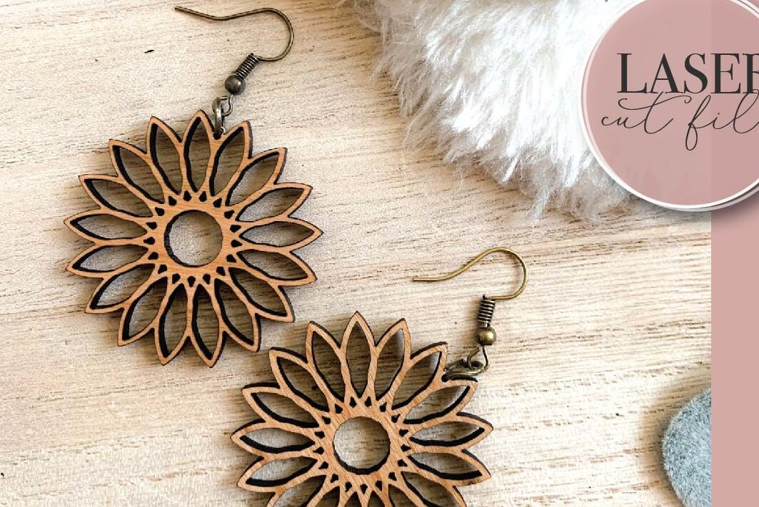 Intra απο ξύλο plywood 3mm-4mm πάχος Σκουλαρίκια λέιζερ Boho Floral Δίασταση 3x3 cm INTRAFABR-73359022