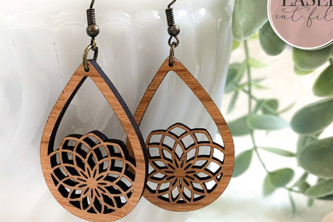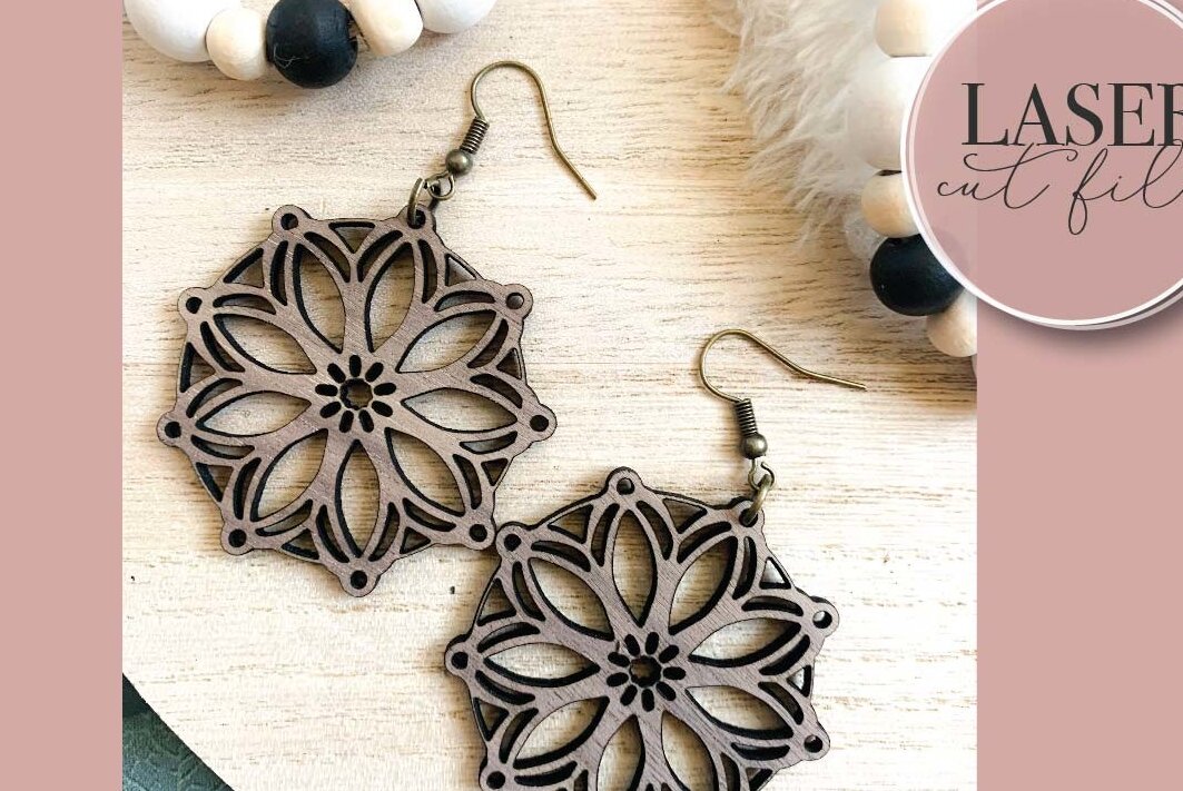 Intra απο ξύλο plywood 3mm-4mm πάχος Σκουλαρίκια λέιζερ Boho Floral Δίασταση 3x3 cm INTRAFABR-73358882