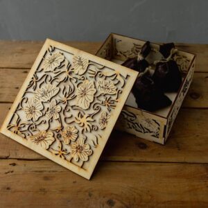 Intra απο ξύλο plywood 3mm-4mm πάχος - Ξύλινο κουτί δώρου με καπάκι και κλειδαριά CNC Δίασταση 30x30 cm Intraeaxys-r7vm4yk7