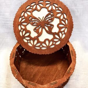 Intra απο ξύλο plywood 3mm-4mm πάχος - Πρότυπο διακοσμητικού σχεδίου πεταλούδας στρογγυλό κουτί Δίασταση 30x30 cm Intraeaxys-yon0ddx7