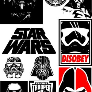 Intra απο ξύλο plywood 3mm-4mm πάχος - Διανυσματικό πακέτο σιλουέτας Star Wars Δίασταση 20x20 cm Intraeaxys-joeqr8o6