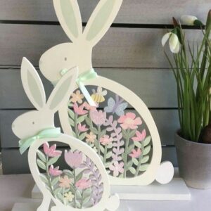 Intra απο ξύλο plywood 3mm-4mm πάχος - Λαγουδάκι Πάσχας με τα λουλούδια Δίασταση 30x30 cm Intraeaxys-6o3n80j1