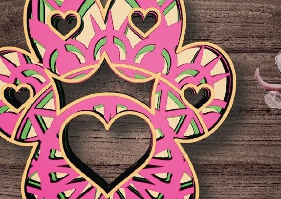 Intra απο ξύλο plywood 3mm-4mm πάχος Πόδι ζώου, καρδιά, μάνταλα, Δίασταση 30x20 cm INTRAFABR-31816126