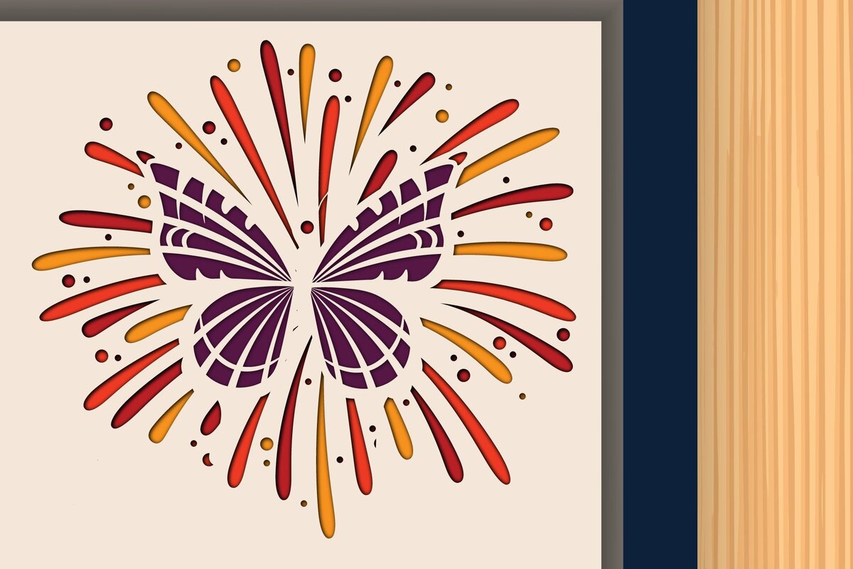 Intra απο ξύλο plywood 3mm-4mm πάχος Πεταλούδα με Firework Shadow Box Δίασταση 25x25 cm INTRAFABR-34889434