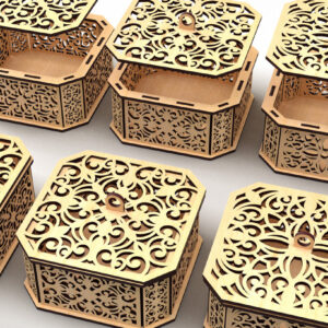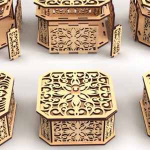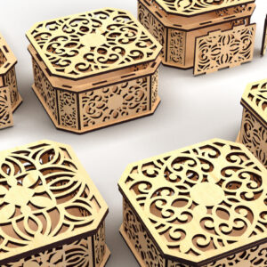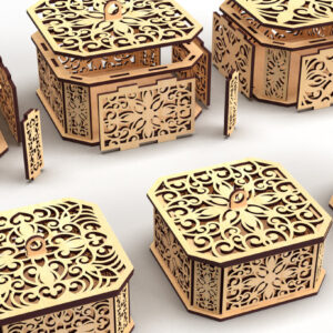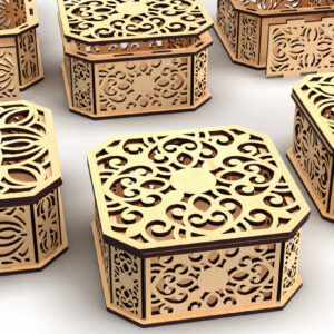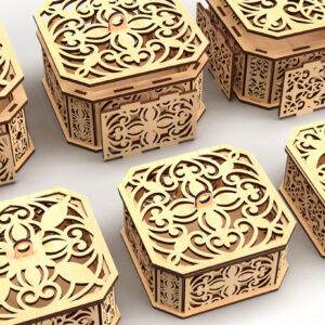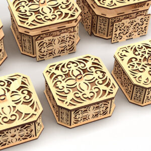 Intra απο ξύλο plywood 3mm-4mm πάχος - Διακοσμητικό κουτί δώρου με κομμένο εξάγωνο λέιζερ 3 Δίασταση 15x15 cm INTRAFABR-82945115