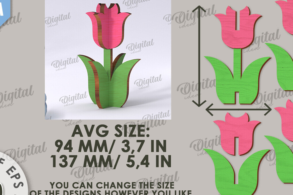 Intra απο ξύλο plywood 3mm-4mm πάχος Τρισδιάστατη τουλίπα. Διακόσμηση σπιτιού Δίασταση 30x20 cm INTRAFABR-117785802