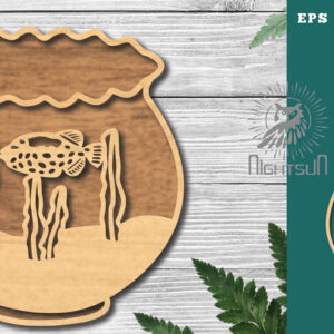 Intra απο ξύλο plywood Χρώμα wenge 3mm-4mm πάχος - Ψάρια σε μπολ Διακόσμηση κοπής με λέιζερ 3 Δίασταση 20x20 cm INTRAFABR-105537123