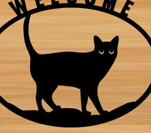 Intra απο ξύλο plywood 3mm-4mm πάχος – Καλώς ήρθατε Cat Round Metal Wall Art Δίασταση 40x30 cm INTRAFABR-69970411