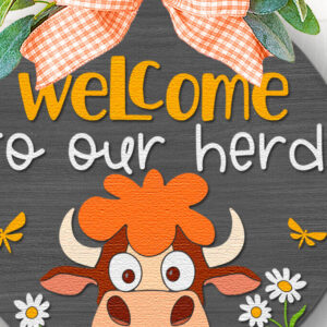Intra απο ξύλο plywood 3mm-4mm πάχος – Καλώς ήρθατε στο Our Herd, Farm Door Sign Δίασταση 40x30 cm INTRAFABR-117491367