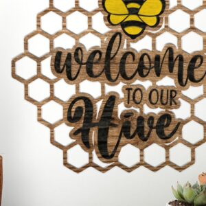 Intra απο ξύλο plywood 3mm-4mm πάχος – Καλώς ήρθατε στο Our Hive Wall Art Sign, F Δίασταση 40x30 cm INTRAFABR-86003620