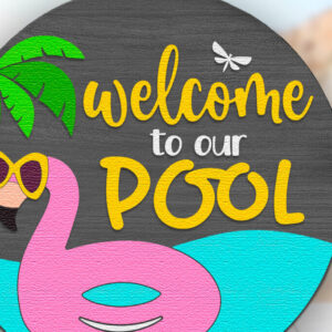 Intra απο ξύλο plywood 3mm-4mm πάχος – Καλώς ήρθατε στο Our Pool, Flamingo Door Δίασταση 20x20 cm INTRAFABR-122087800