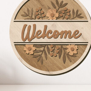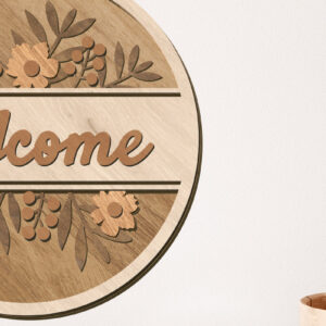 Intra απο ξύλο plywood 3mm-4mm πάχος – Καλωσόρισμα Floral στρογγυλή πινακίδα Δίασταση 20x20 cm INTRAFABR-117180617