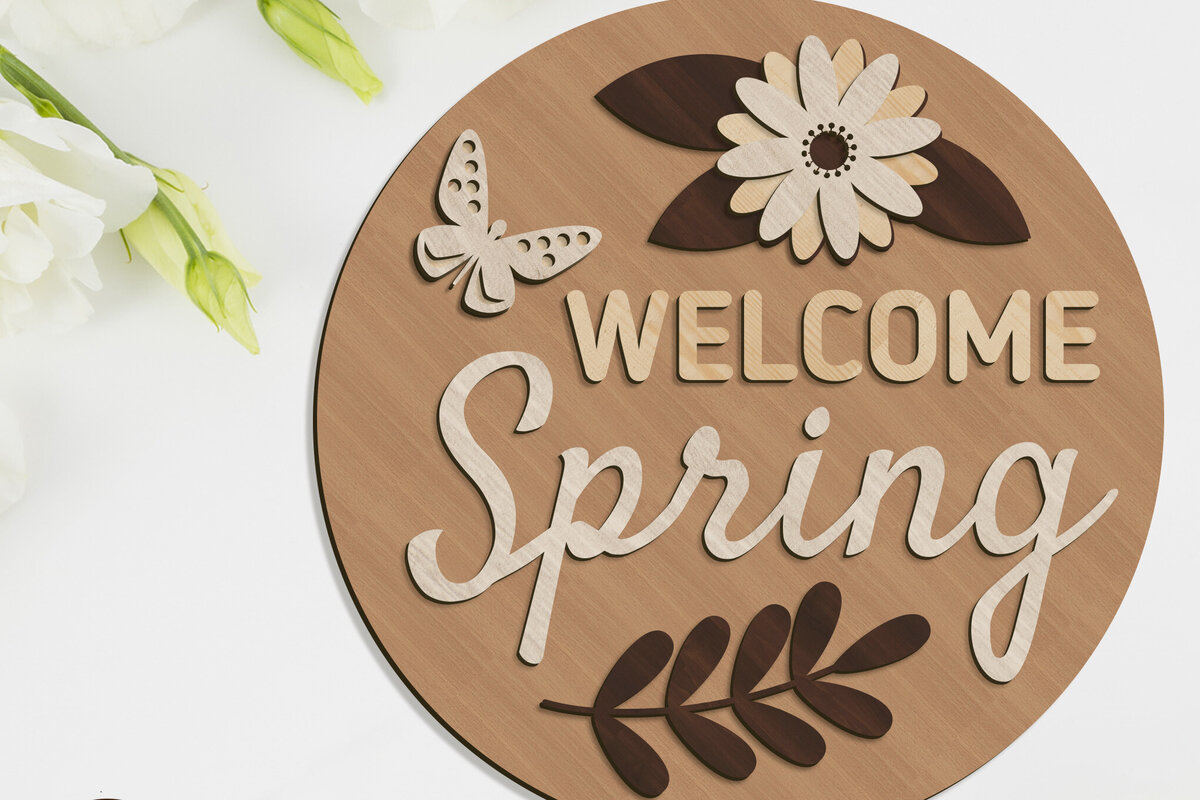 Intra απο ξύλο plywood 3mm-4mm πάχος – Καλωσόρισμα Άνοιξη σημάδι Δίασταση 20x20 cm INTRAFABR-31677861