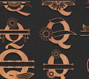 Intra απο ξύλο plywood 3mm-4mm πάχος – Κοπή λέιζερ μονόγραμμα γραμμάτων Q Δίασταση 20x20 cm INTRAFABR-56032603