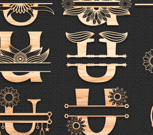 Intra απο ξύλο plywood 3mm-4mm πάχος – Κοπή λέιζερ μονόγραμμα γραμμάτων U Δίασταση 20x20 cm INTRAFABR-56032655