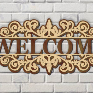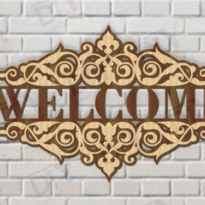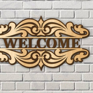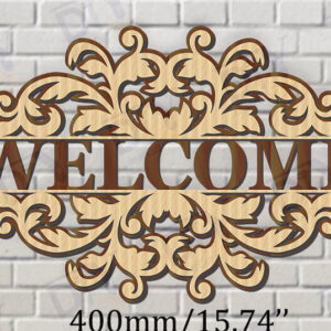 Intra απο ξύλο plywood 3mm-4mm πάχος – Κοπή λέιζερ πινακίδας δύο επιπέδων "Καλώς ήρθατε". Δίασταση 20x20 cm INTRAFABR-115220469