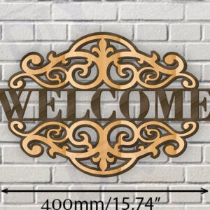 Intra απο ξύλο plywood 3mm-4mm πάχος – Κοπή λέιζερ πινακίδας δύο επιπέδων "Καλώς ήρθατε". Δίασταση 20x20 cm INTRAFABR-115235129