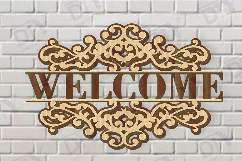Intra απο ξύλο plywood 3mm-4mm πάχος – Κοπή λέιζερ πινακίδας δύο επιπέδων "Καλώς ήρθατε". Δίασταση 20x20 cm INTRAFABR-117346225