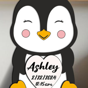 Intra απο ξύλο plywood 3mm-4mm πάχος – Λέιζερ αναγγελίας γέννησης μωρού Penguin Δίασταση 20x20 cm INTRAFABR-103243670