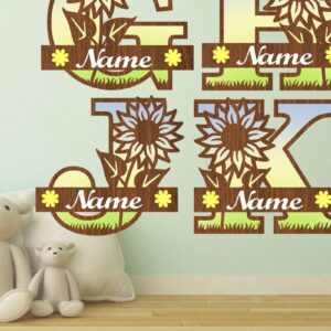 Intra απο ξύλο plywood 3mm-4mm πάχος – Λέιζερ δέσμης γραμμάτων μονογράμματος ηλίανθου Δίασταση 20x20 cm INTRAFABR-75940849