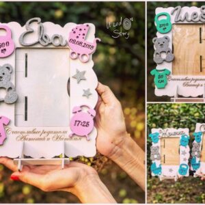Intra απο ξύλο plywood 3mm-4mm πάχος - Πρότυπο κορνίζας φωτογραφιών μετρήσεων γέννησης παιδιού Δίασταση 30x30 cm Intraeaxys-075yqv0o