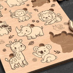 Intra απο ξύλο plywood 3mm-4mm πάχος – Safari Animal Puzzle για παιδιά Δίασταση 20x20 cm INTRAFABR-122984262