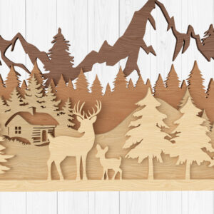 Intra απο ξύλο plywood Χρώμα wenge 3mm-4mm πάχος - Ελάφια και καμπίνα Σκηνή με λέιζερ Δίασταση 30x20 cm INTRAFABR-68645261