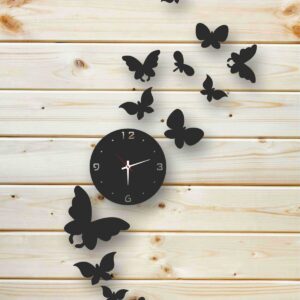 Intra απο ξύλο plywood 3mm-4mm πάχος - Ρολόι τοίχου Flying Butterflies Δίασταση 30x30 cm Intraeaxys-pok3knj7