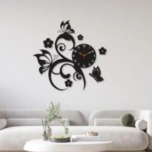 Intra απο ξύλο plywood 3mm-4mm πάχος - Ρολόι τοίχου πεταλούδες με λουλούδια Δίασταση 30x30 cm Intraeaxys-d1lv4zyo