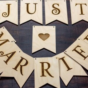 Intra απο ξύλο plywood 3mm-4mm πάχος - Διακοσμητικές κρεμαστές γιρλάντες πανό Wedding Garland Just Married Flags Δίασταση 30x30 cm Intraeaxys-qommyxro