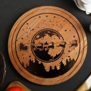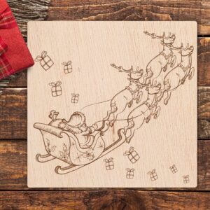 Intra απο ξύλο plywood 3mm-4mm πάχος - Χαρακτική με λέιζερ Χριστουγεννιάτικο Flying Santa Sleigh Τάρανδος Δίασταση 30x30 cm Intraeaxys-6o3y3qr7