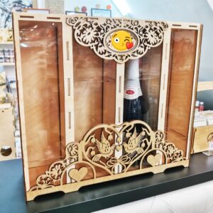 Intra απο ξύλο plywood 3mm-4mm πάχος - Δύο μπουκάλια και δύο γυάλινα κουτί κρασιού από ξύλο Δίασταση 30x30 cm Intraeaxys-r7vm8ll7